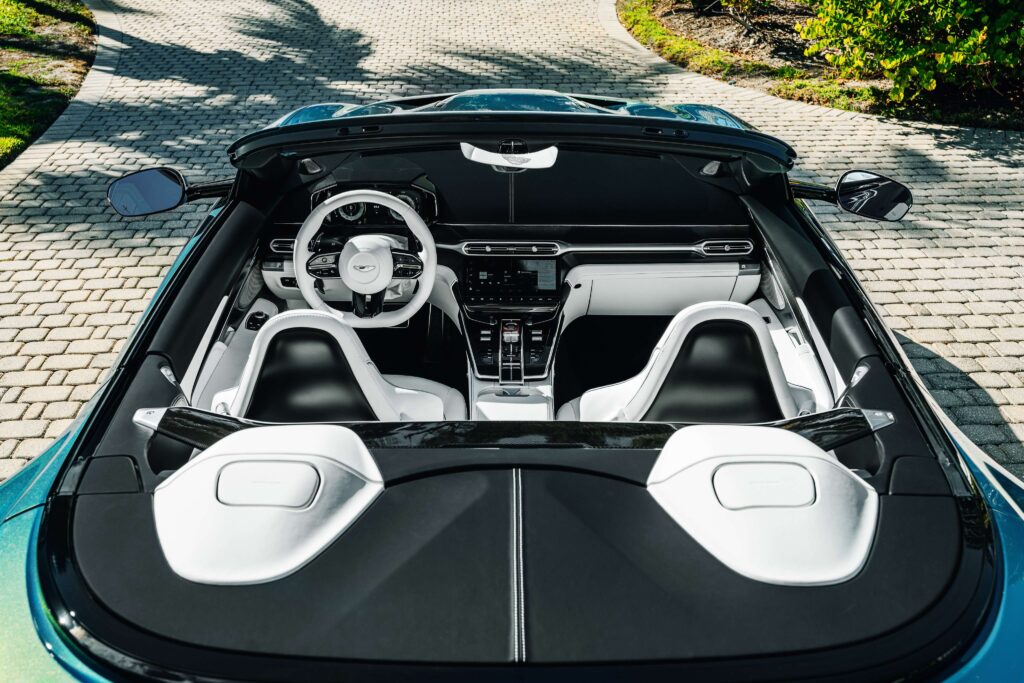 The Wave Edition was designed as a love letter to the Collier County shoreline, capturing the fluid energy of the Gulf of Mexico. The car’s skin is finished in Q Iridescent Sapphire, a captivating blue that shifts with the light to reveal a green shimmer—a direct tribute to the sun-drenched waters of the Florida Everglades. This liquid-like finish is framed by an extended body-color paint scheme and Gloss Black tinted carbon fiber packages, emphasizing the Volante’s long, fluid silhouette.