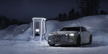 Step inside, and the visual tempo shifts from dynamic motion to “serene sanctuary.” The cabin is a light-filled retreat dominated by a Glacier White palette, creating a sense of weightless balance against Gloss Black carbon fiber trim.