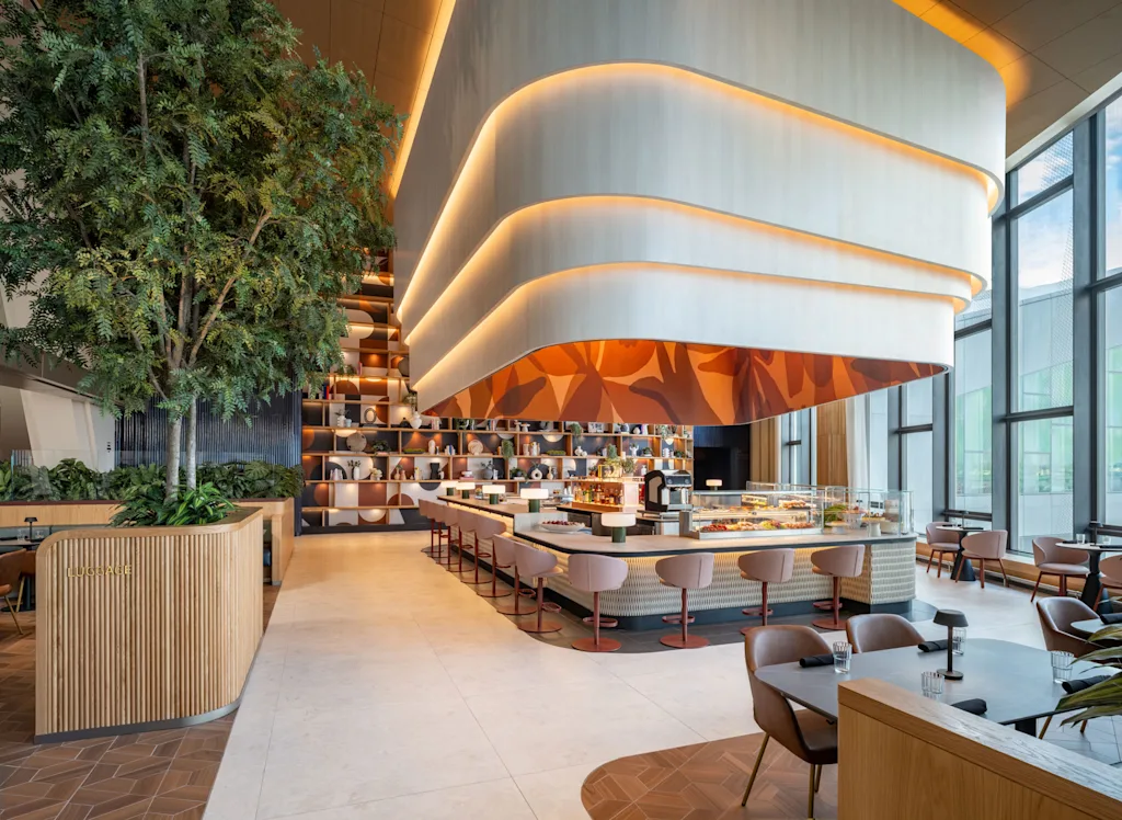 Those early spaces stood out for their local collaborations, individually plated dishes prepared on site, and beverage menus featuring nearby breweries and distilleries. The goal was simple: even if travelers never stepped outside the terminal, they could still experience a taste of the city.