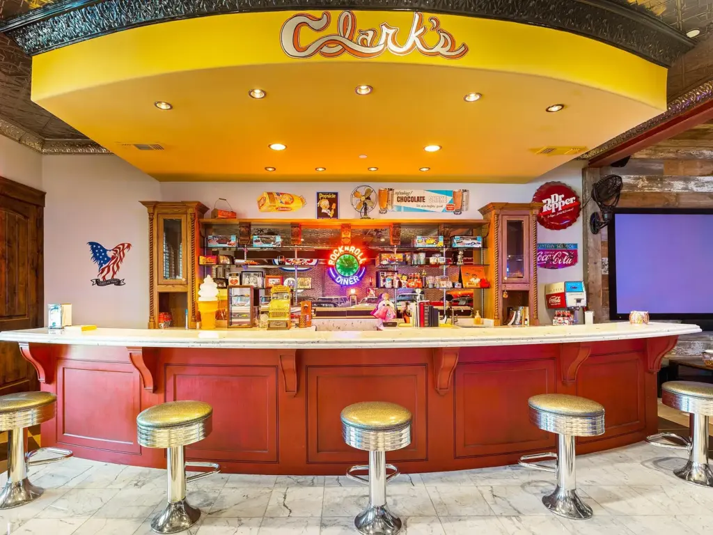• Automotive Showroom: Climate-controlled space for 20+ vehicles with 1950s-style soda fountain bar