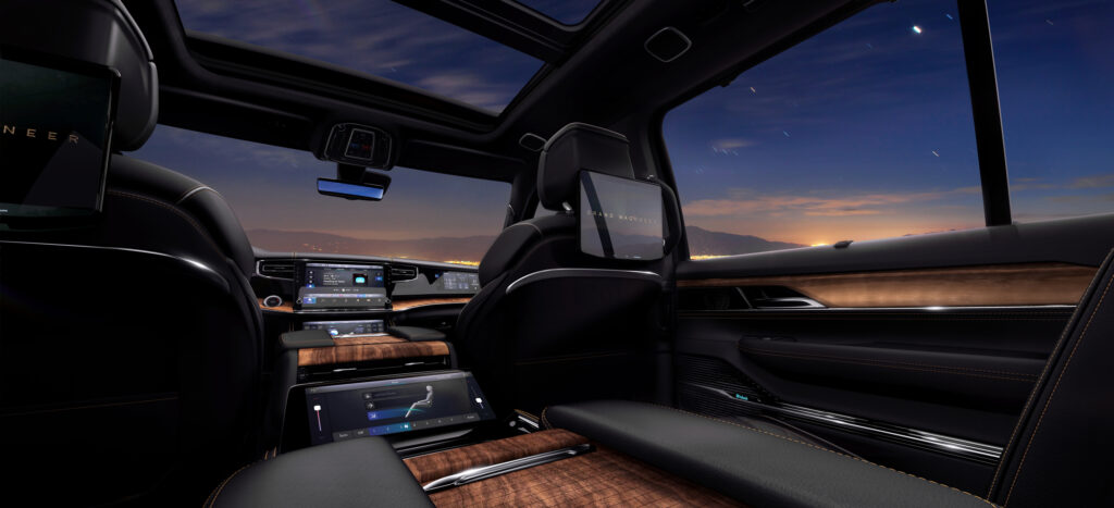 2. America’s First REEV: Arriving later in the model year is a groundbreaking Range-Extended Electric Vehicle (REEV) application. This system delivers an astonishing estimated 647 horsepower and 620 lb-ft of torque, making it the quickest Grand Wagoneer ever, hitting 0-60 mph in just five seconds. It features a gas-powered generator that charges the battery on the go, resulting in an anticipated total driving range of upwards of 500 miles, providing electric confidence for the daily commute without the range anxiety of a pure EV for long road trips.