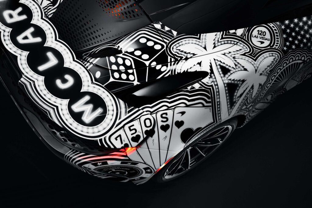 Rather than recreating the glow and spectacle through colour, MSO translates Las Vegas’ rhythm, architecture and atmosphere through hand-painted monochrome linework. The ‘Sketch in Motion’ livery captures the movement and character of the city – from iconic signage and skyline landmarks to its ties with music and performance – each element contributing to a wider narrative that also weaves in McLaren’s racing and design heritage.