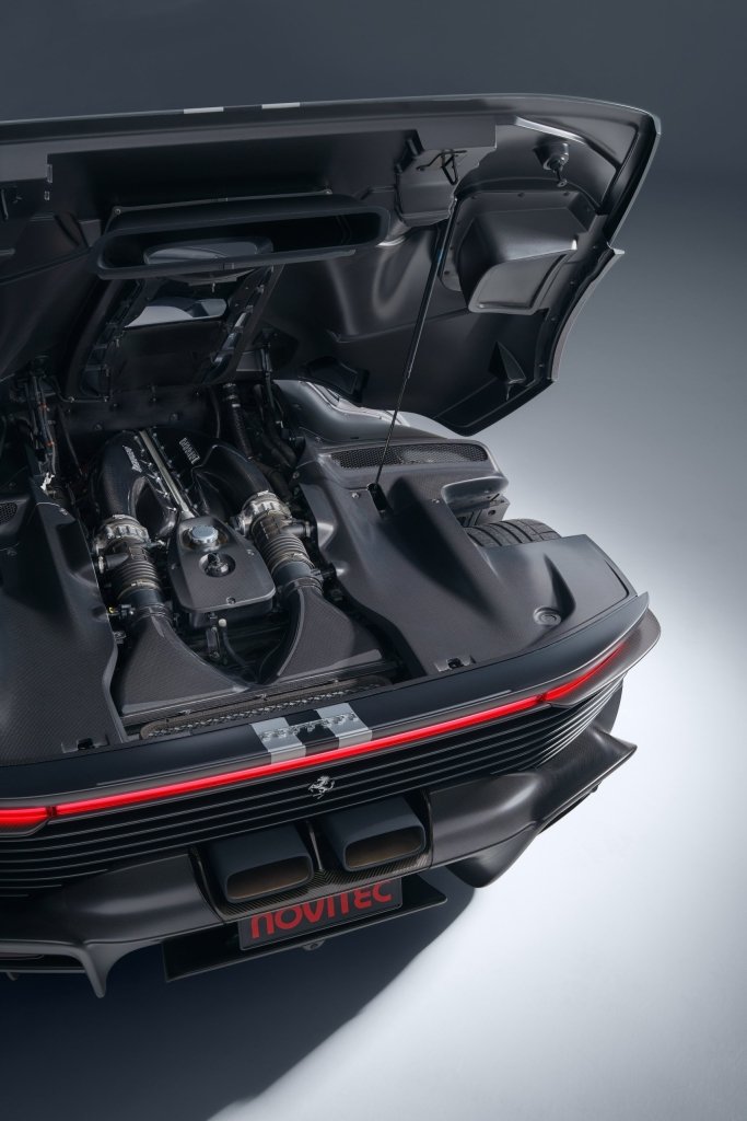 The Novitec Ferrari Daytona SP3 elevates Ferrari’s “Icona” edition with precision tuning and bespoke customization. At Novitec’s Stetten facility, the car receives a high-performance exhaust system with metal catalysts, boosting the 6.5-liter V12 engine by 28 hp and offering optional gold-plating for improved heat dissipation. The exhaust features electronically controlled flaps, allowing the driver to adjust the V12’s sound from subtle to racetrack-level intensity.