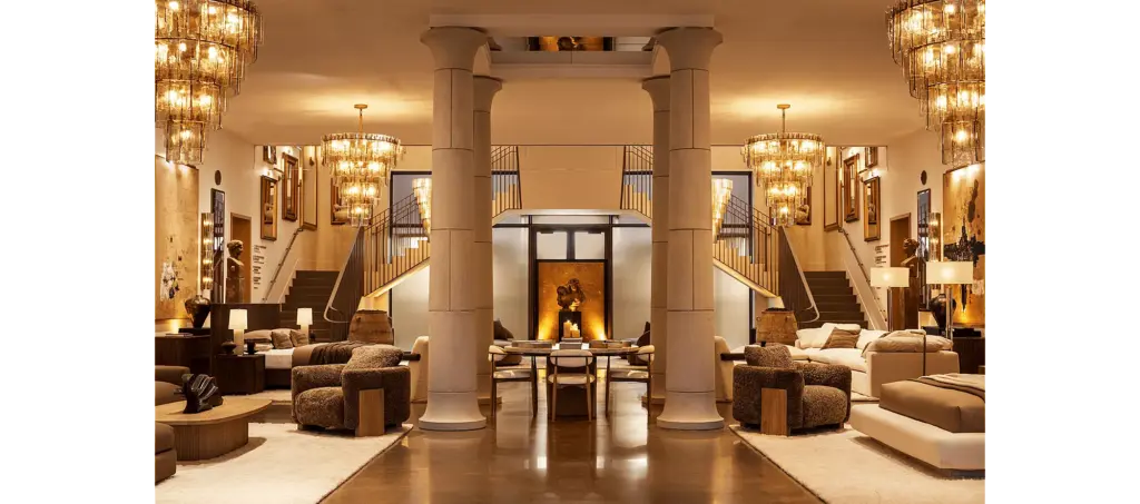 RH Interiors & RH Modern: The lower levels present a classical arrangement of rooms showcasing the brand’s comprehensive design ethos. Here, you’ll find everything from the refined designs of RH Interiors—an homage to enduring styles—to the tribute to 20th-century modernism found in the RH Modern collection.