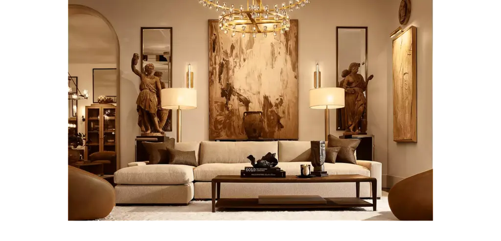 RH Detroit, The Gallery is a testament to the brand’s vision of blurring the lines between residential and retail, indoors and outdoors, home and hospitality. It’s designed not as a showroom, but as a living, breathing design gallery where artistic installations of RH collections are seamlessly integrated with rare art, antiques, and artifacts from across the globe.