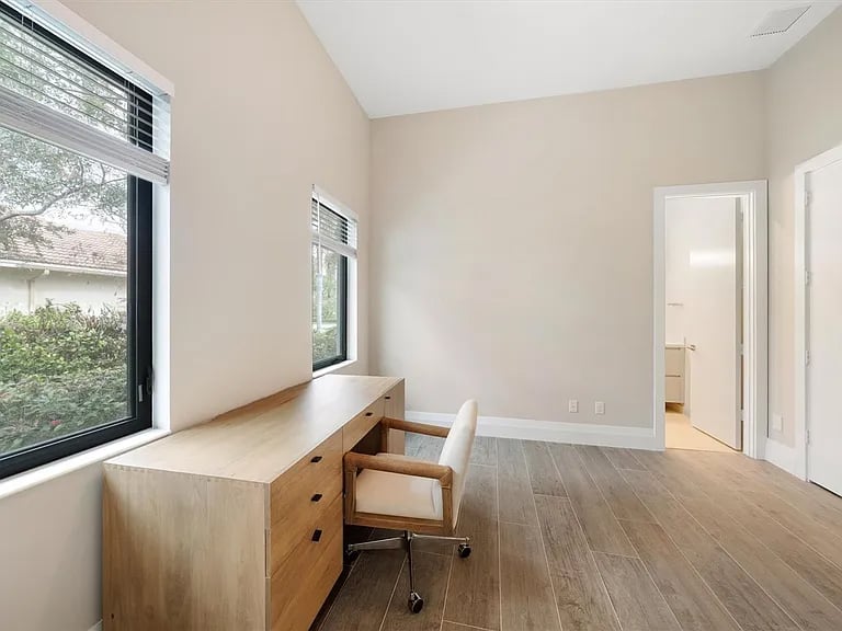 From the moment you enter, the Zen-inspired aesthetic is apparent. The main living areas are bright and airy, featuring an open-concept design with expansive, floor-to-ceiling windows that invite natural light deep into the space. High-end finishes abound, from solid wood doors and custom tray ceilings to the state-of-the-art Lutron automated lighting system and electric blinds. This is truly a smart home, complete with fiber optic accent lighting, a central vacuum system, and a robust security system for complete peace of mind.