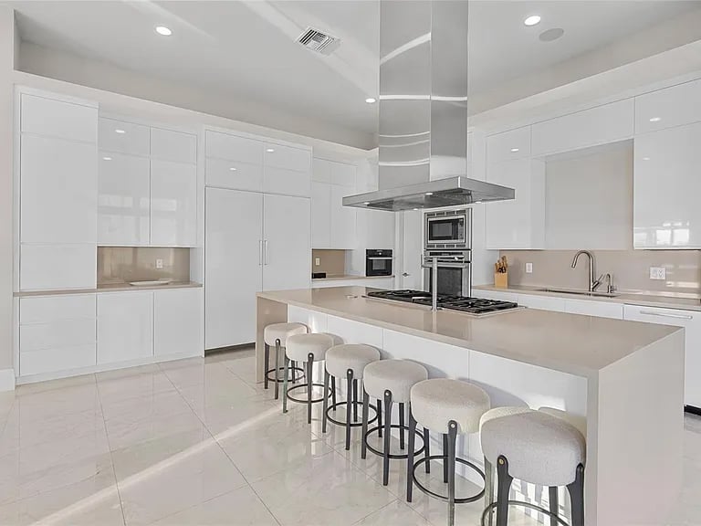 The heart of the home is a modern chef’s kitchen designed for both grand entertaining and everyday convenience. It features: