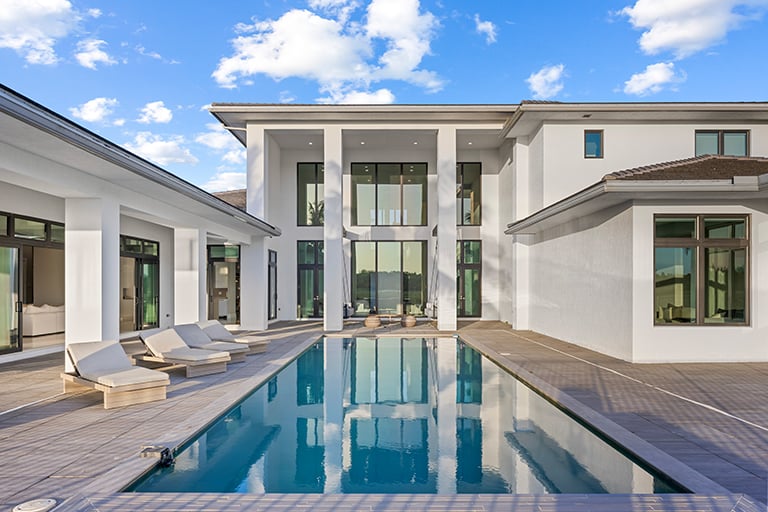 Step outside to a fully fenced, private oasis that rivals any resort. The stunning 60′ x 16′ saltwater infinity-edge pool and heated spa are enhanced with fiber optic lighting for a dazzling display at night. The covered lanai, complete with custom swinging seats, provides stylish comfort year-round. Best of all, the outdoor space is already plumbed and ready for you to install the summer kitchen of your dreams.